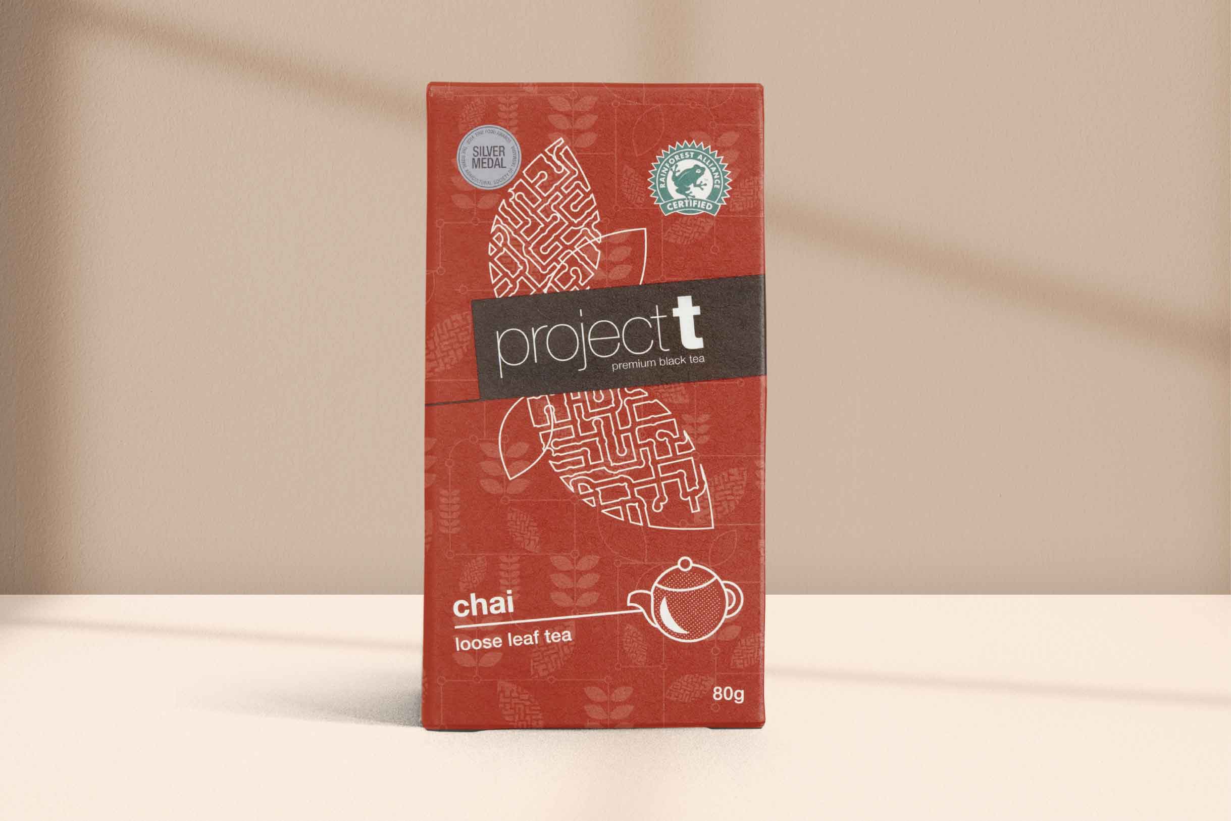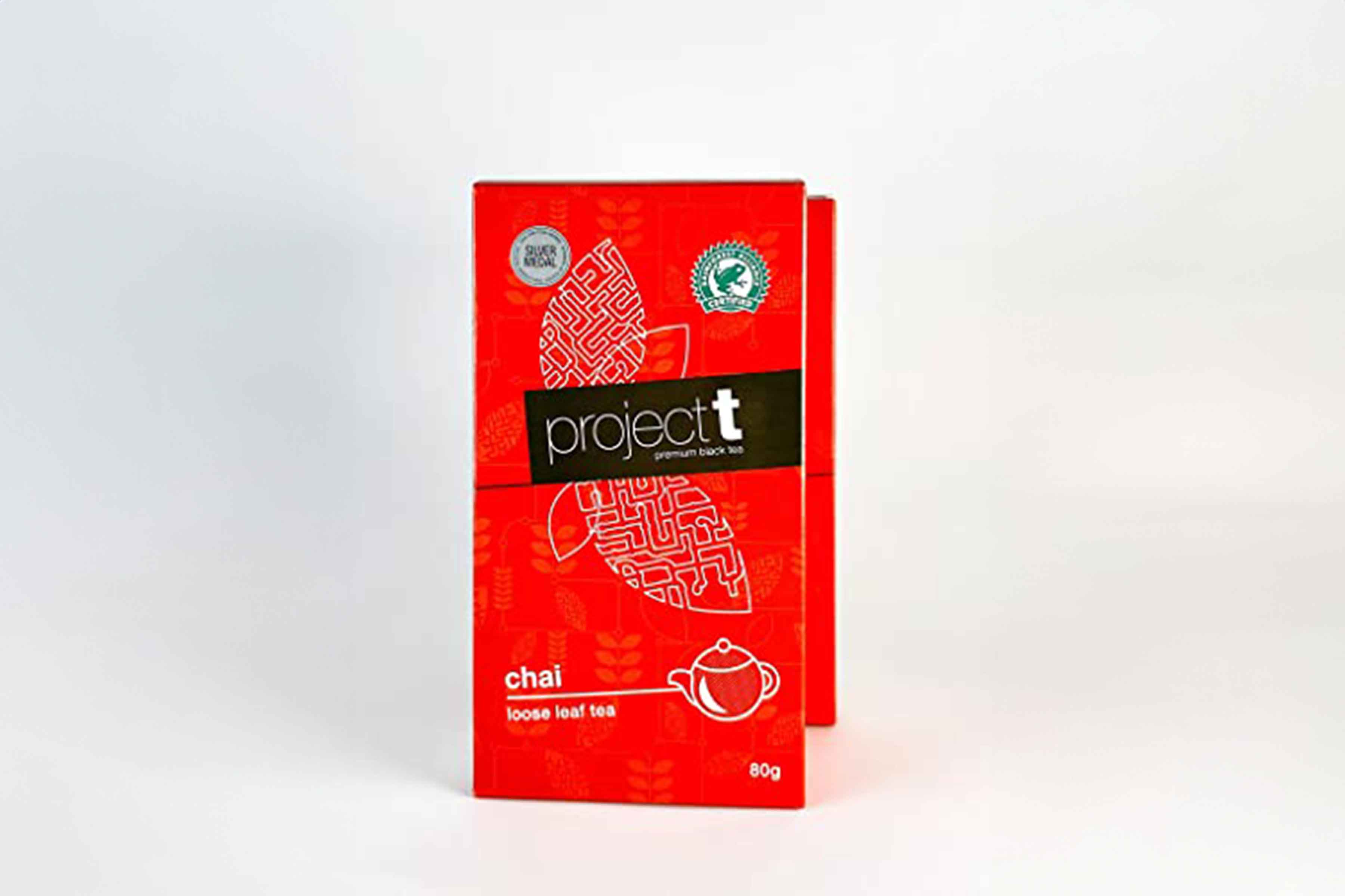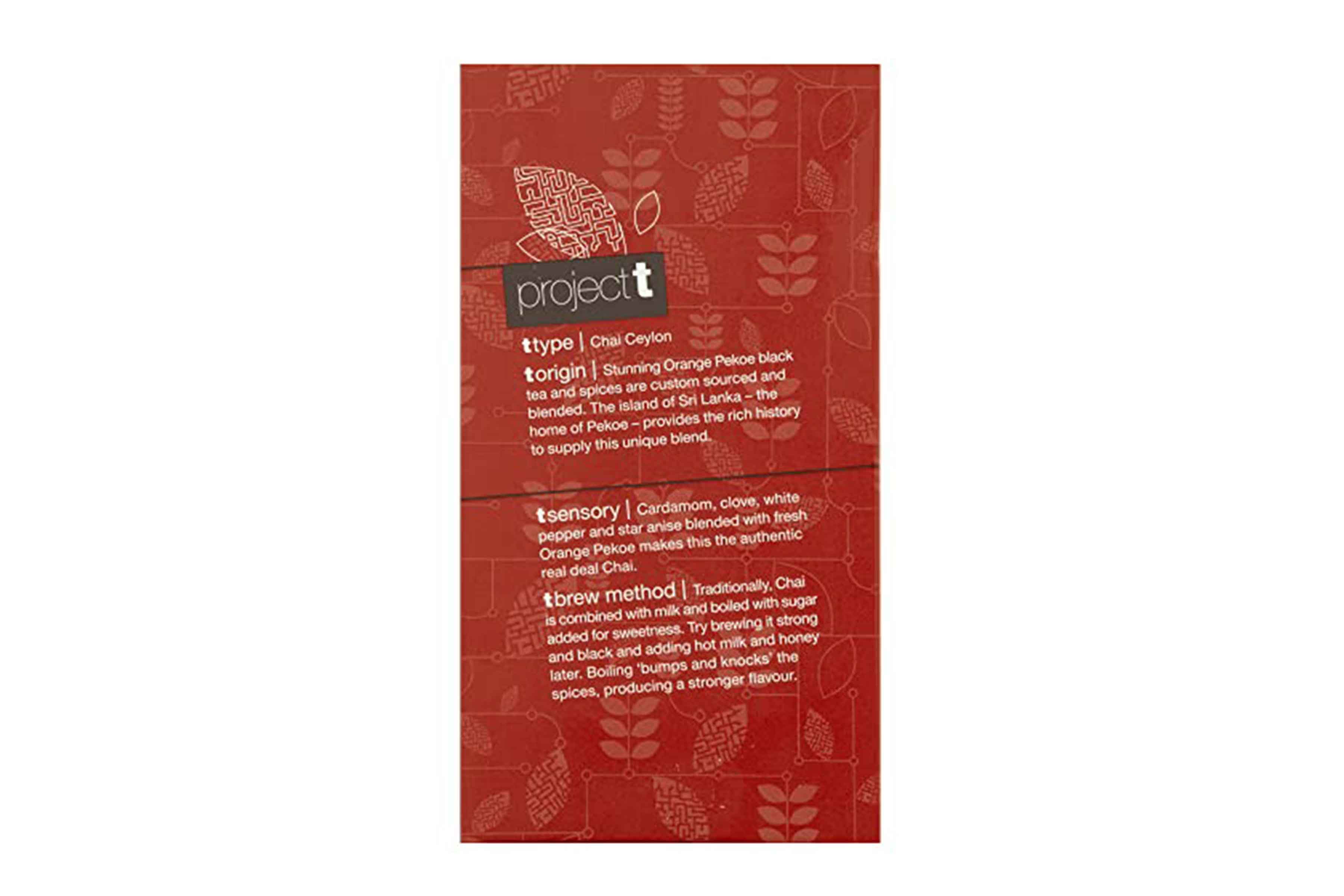 Cardamom, clove, white pepper and star anise blended with orange Pekoe makes this the authentic real deal Chai. Traditionally, Chai is combined with milk and boiled water with sugar added for sweetness. Try brewing it strong and black and adding hot milk and honey later. Boiling ‘bumps and knocks’ the spices, producing a stronger flavour. Project T is a winner of multiple awards.
