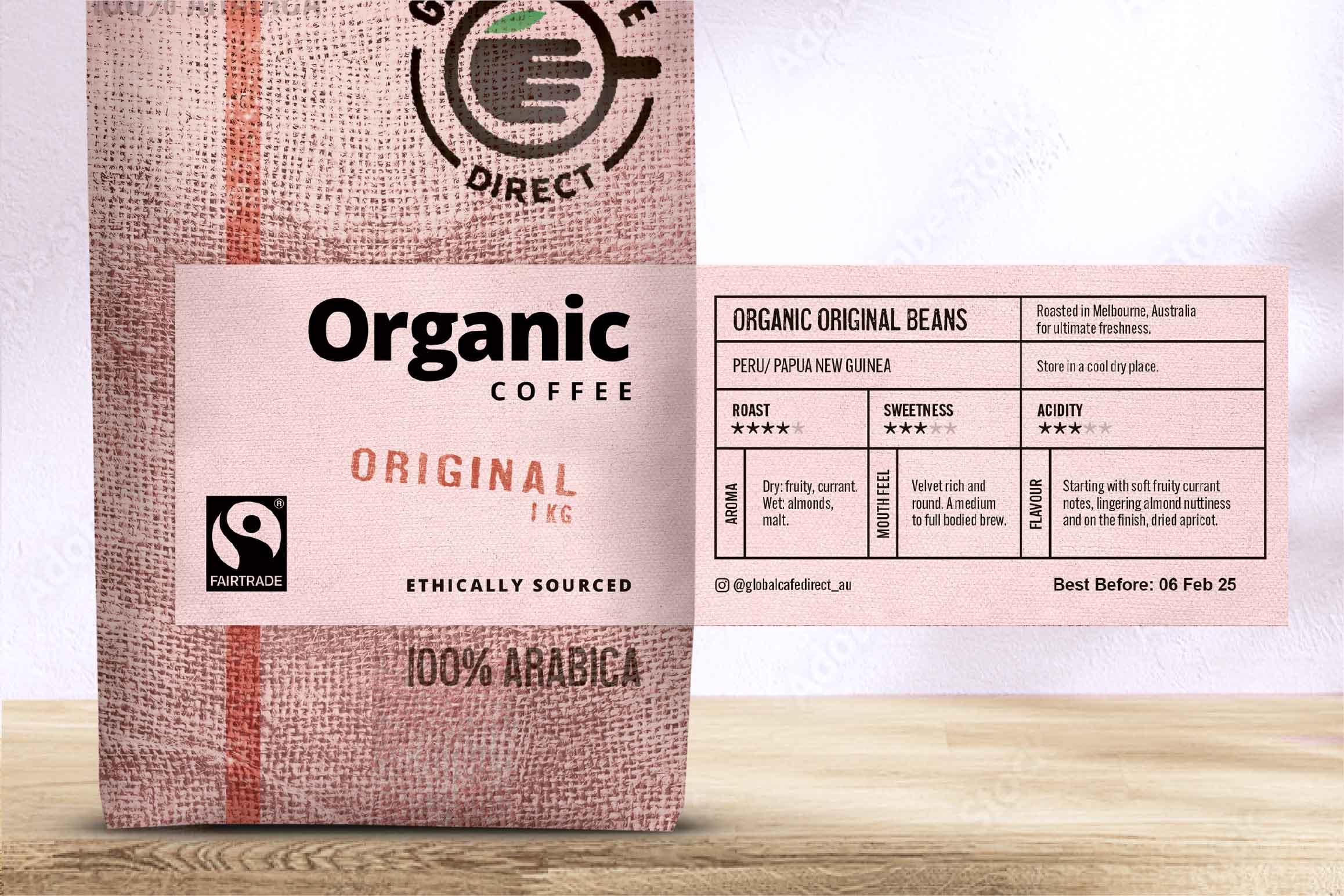 Our award-winning coffee is a blend of high-altitude Arabica beans grown in Oceania and South America, which are Fairtrade and Organic certified and free of pesticides.